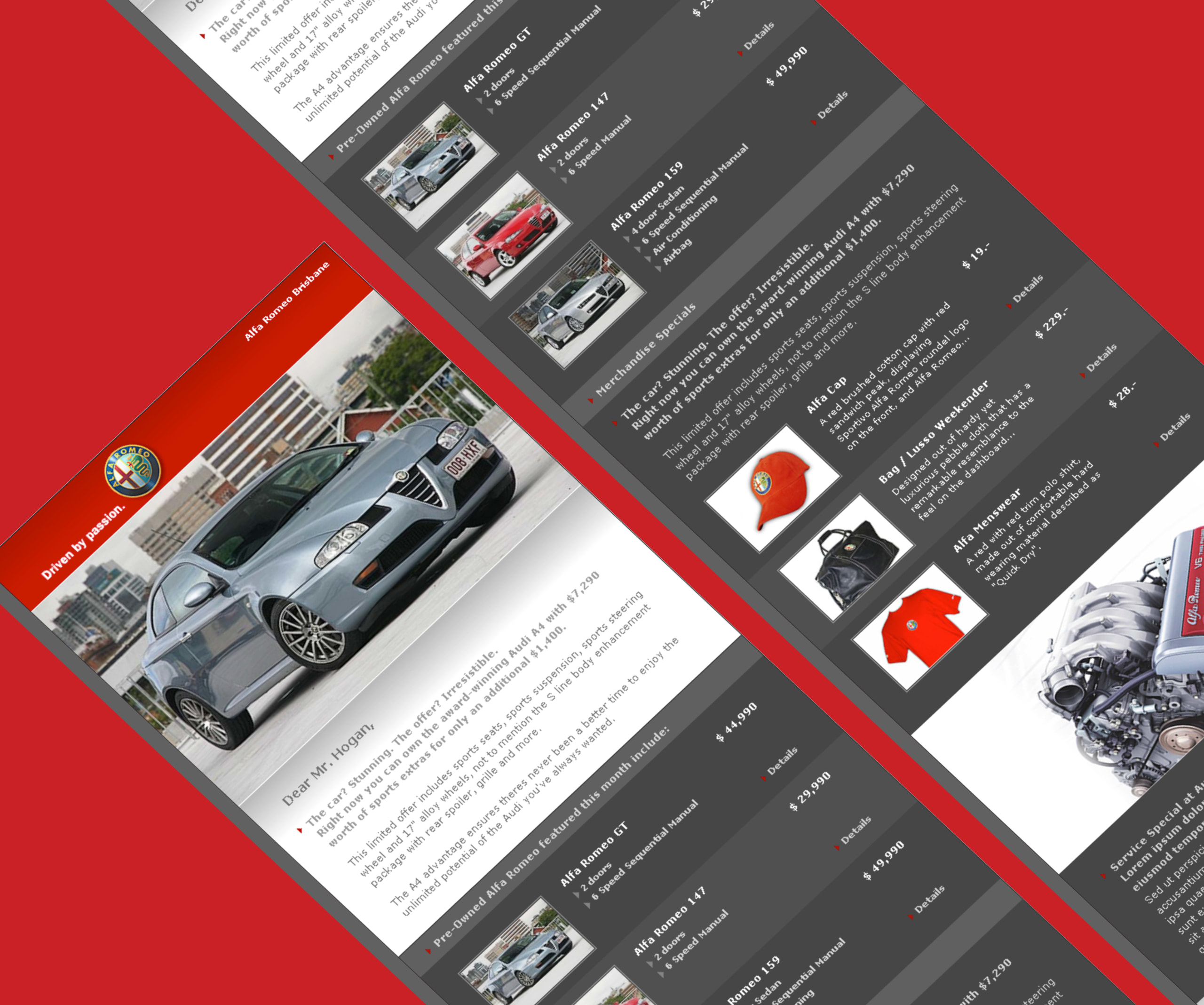 Alfa Romeo Dealership website included Dealer Profile, Pre-Owned, Demonstrator, and New Vehicles with XML data feeds from the PrestigeWay web service. The centrally managed Content Management System (CMS) enabled the Alfa Romeo Dealership to update their own content globally. News articles, on their website, were published in Google News within 6 mins of being published.