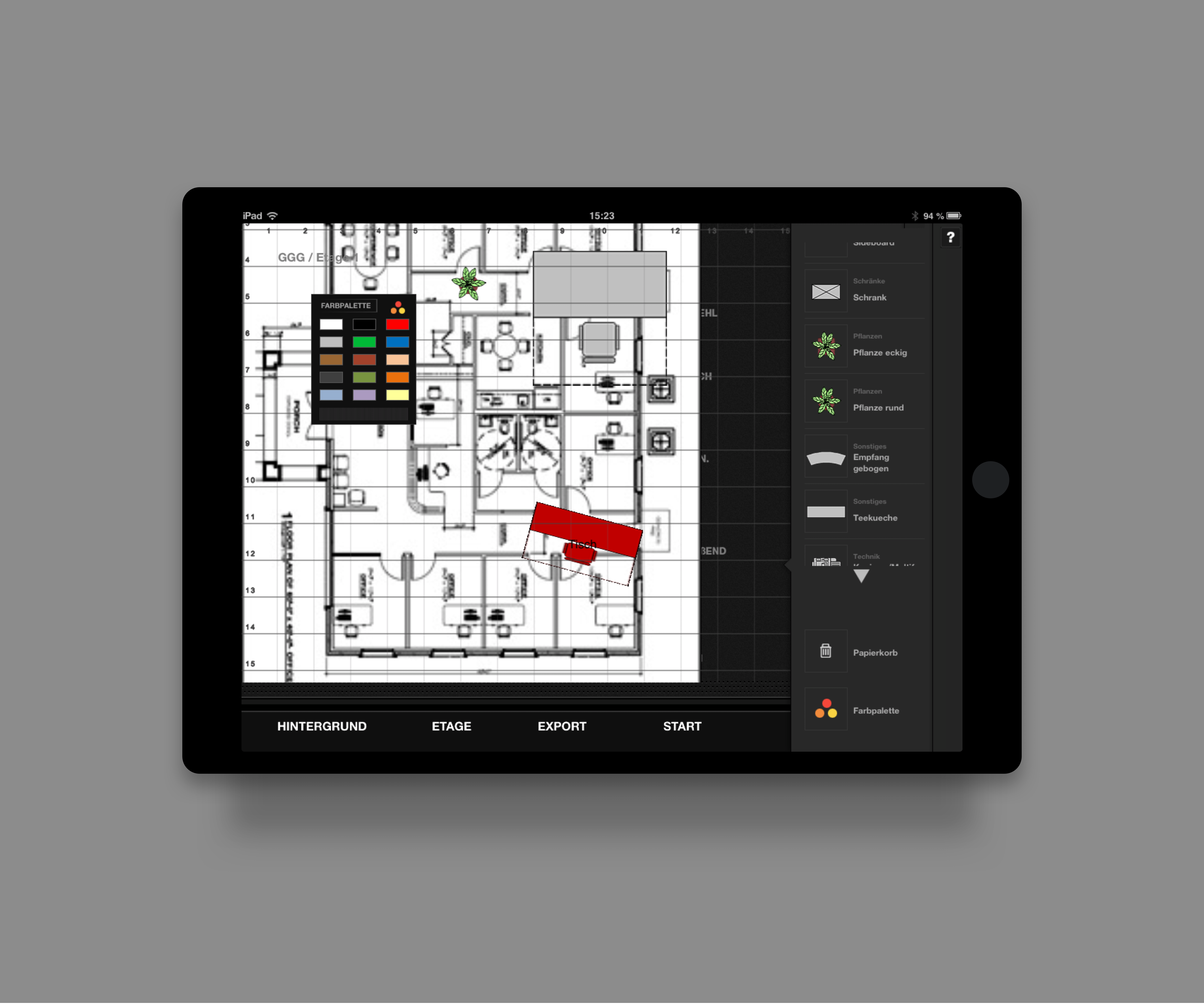 The Layout Assist App was used by architects, planners, and managers to easily and efficiently visualize and implement interior layouts of commercial/residential buildings.