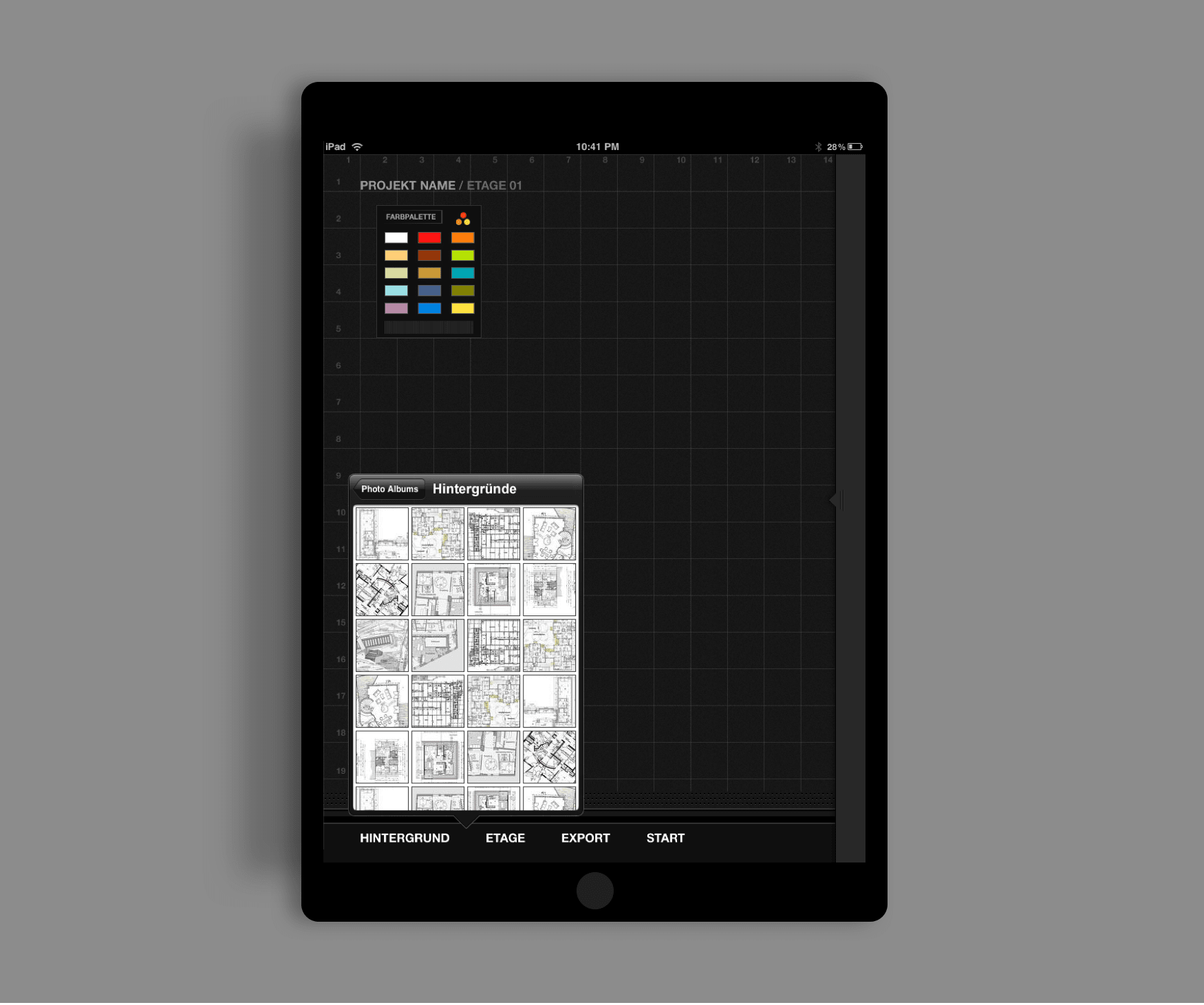 The App organized buildings by floors with the ability to import architectural plans for each floor via PDF or images from the devices Photo Gallery.