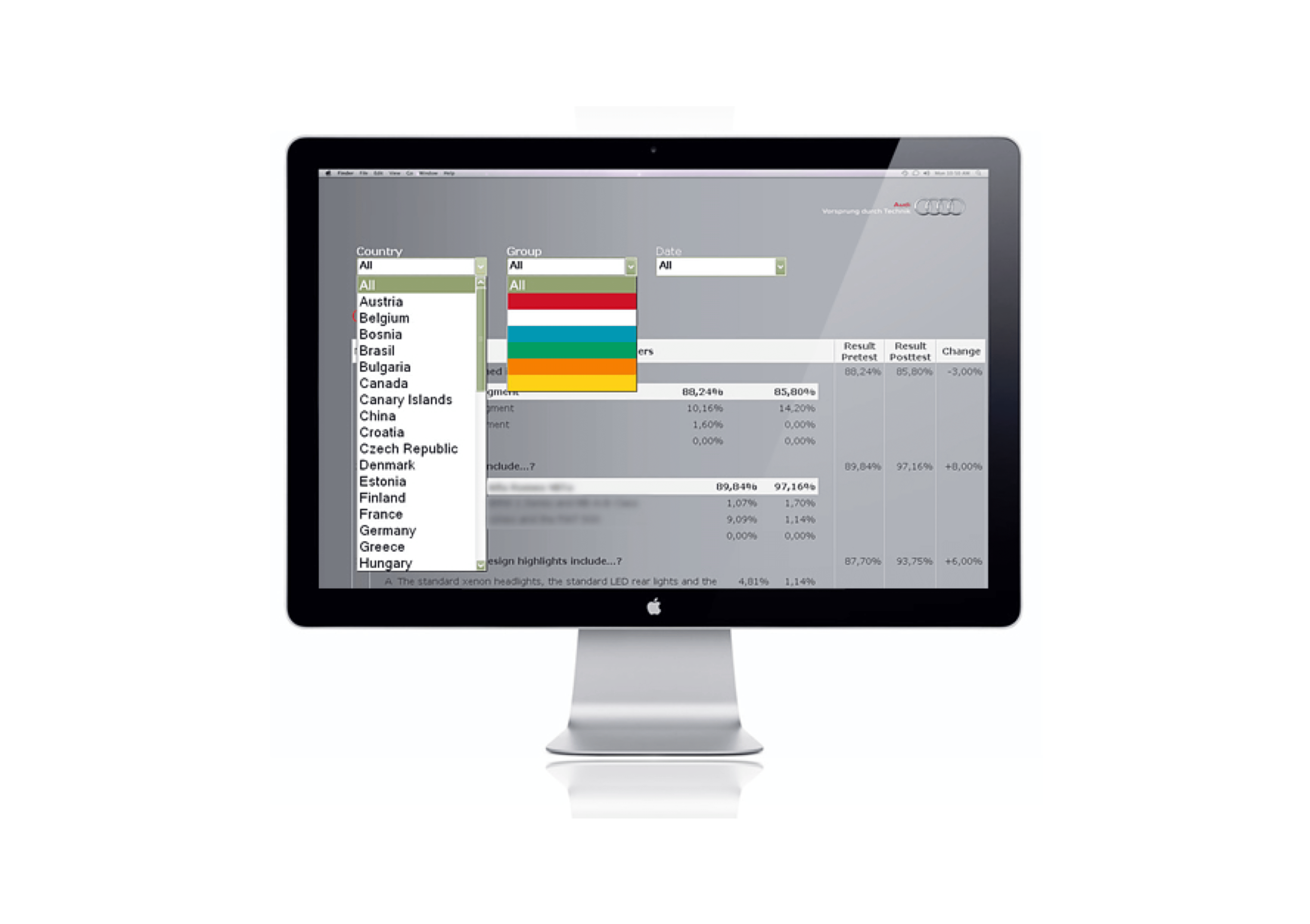 Their answers were collated in a statistical tool that presented key learnings from the results in order to improve Audi training sessions.