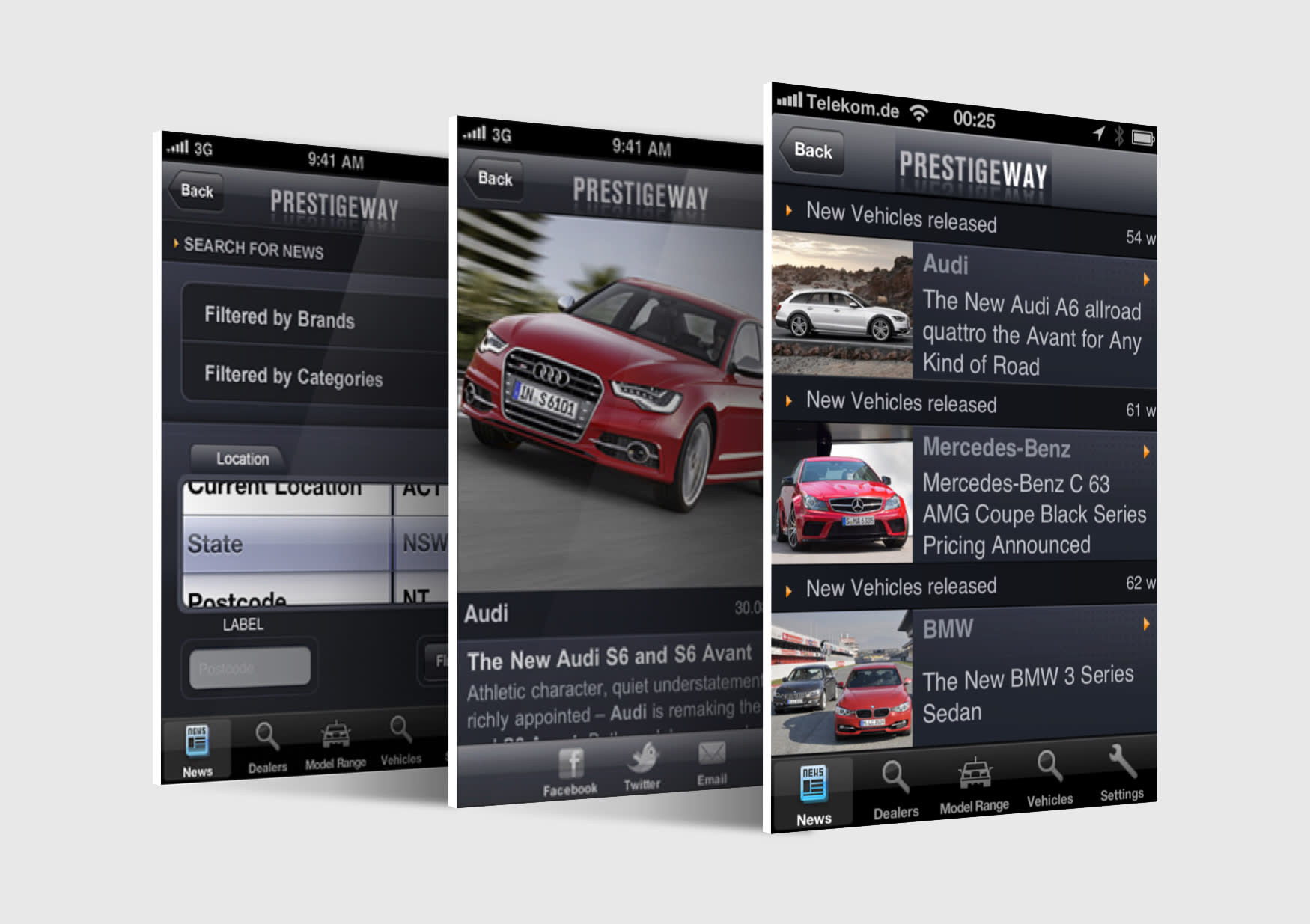 PrestigeWay included a database of Approved Prestige Automotive Dealerships, Dealer Profiles, Pre-Owned and New Vehicles with XML data feeds from the PrestigeWay web service. The centrally managed Content Management System (CMS) enabled dealerships and brands to update their own content globally. News articles, on the platform, were published in Google News within 6 mins of being published. In 2008, when the Apple App Store was made available to developers, PrestigeWay was extended to include an iPhone App channel.