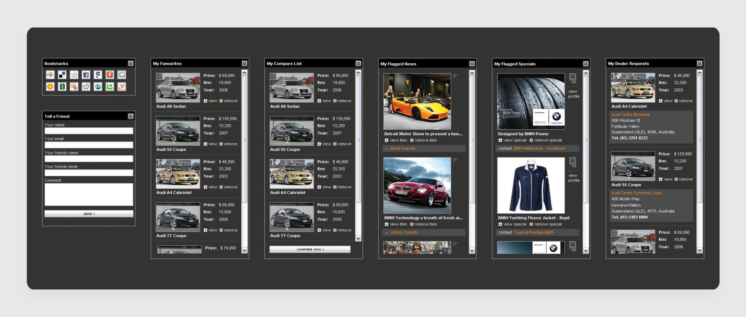 – Social Media integration for sharing news and vehicles